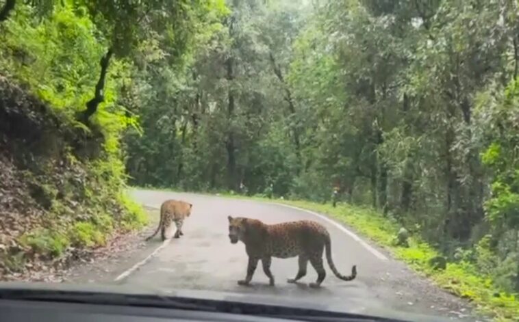 पौड़ी – दिनदहाड़े पौड़ी में कंडोलिया-टेका मोटरमार्ग पर 2 गुलदार घुमते हुए नजर आए हैं, जिन्हें कार सवारों ने अपने कैमरे में कैद किया है, गुलदार के दिखने के बाद क्षेत्र में दहशत का माहौल बना हुआ है, वंही वन विभाग ने लोगों से सावधानी बरतने की अपील की है |