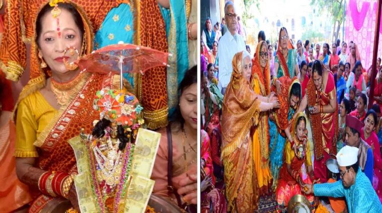 हल्द्वानीः मीराबाई की भगवान श्री कृष्ण की भक्ति की कहानियां तो जगजाहिर है लेकिन इस समय चर्चा में है मीरा की तरह श्री कृष्ण की भक्ति में लील भावना की कहानी। सोशल मीडिया पर इन दिनों एक शादी चर्चा में है ये शादी है हल्द्वानी की 55 साल की भावना रावल और भगवान श्री कृष्ण की। जी हां बैंड की धुन पर थिरकतीं महिलाएं। फूलों से सजे वाहन में सवार दूल्हे के रूप में भगवान श्री कृष्ण की मुर्ती। हर रस्म अपनी तरह से पूरी होती। गोद में कृष्ण की प्रतिमा लिए दुल्हन विदा होती है। आइए आपको इस शादी की पूरी कहानी बताते है।