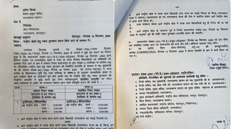 खिलाड़ियों के लिए धामी सरकार ने किया बड़ा ऐलान, मिलेंगे अब इतने रुपए, आदेश जारी