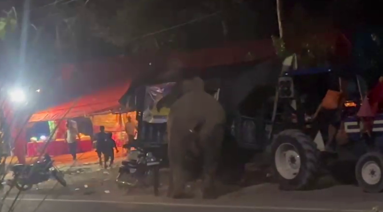 हाथियों का आतंक – हाथियों को देखकर पंडाल में अफरा-तफरी की माहौल मच गया था, लोग अपनी जान बचाने के लिए इधर-उधर भागते हुए नजर आए, इस दौरान एक हाथी ने ट्राली को भी पलट दिया था, राहत की बात ये है कि ट्रैक्टर पर बैठे व्यक्ति की जान बच गई, बताया जा रहा है कि दोनों हाथियों ने करीब एक घंटे इलाके में उत्पात मचाया |