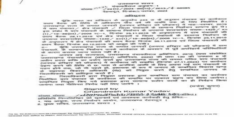 बता दें कि संविधान के अनुच्छेद 243 के तहत पंचायतों का कार्यकाल पांच वर्षों का होता है, पांच साल समाप्त होने पर कार्यकाल समाप्त हो गया है। ऐसे में अब उत्तराखंड पंचायत राज अधिनियम, 2016 और संशोधित अधिनियम, 2020 के प्रावधानों के तहत, नई पंचायतों के गठन तक ग्राम पंचायतों का कार्यभार विकास खंड के सहायक विकास अधिकारियों को सौंपा जाएगा। ये प्रशासक पंचायतों के सामान्य प्रशासनिक कार्य संभालेंगे, लेकिन उन्हें नीतिगत निर्णय लेने की अनुमति नहीं होगी। यह व्यवस्था नई पंचायतों के चुनाव तक प्रभावी रहेगी।
