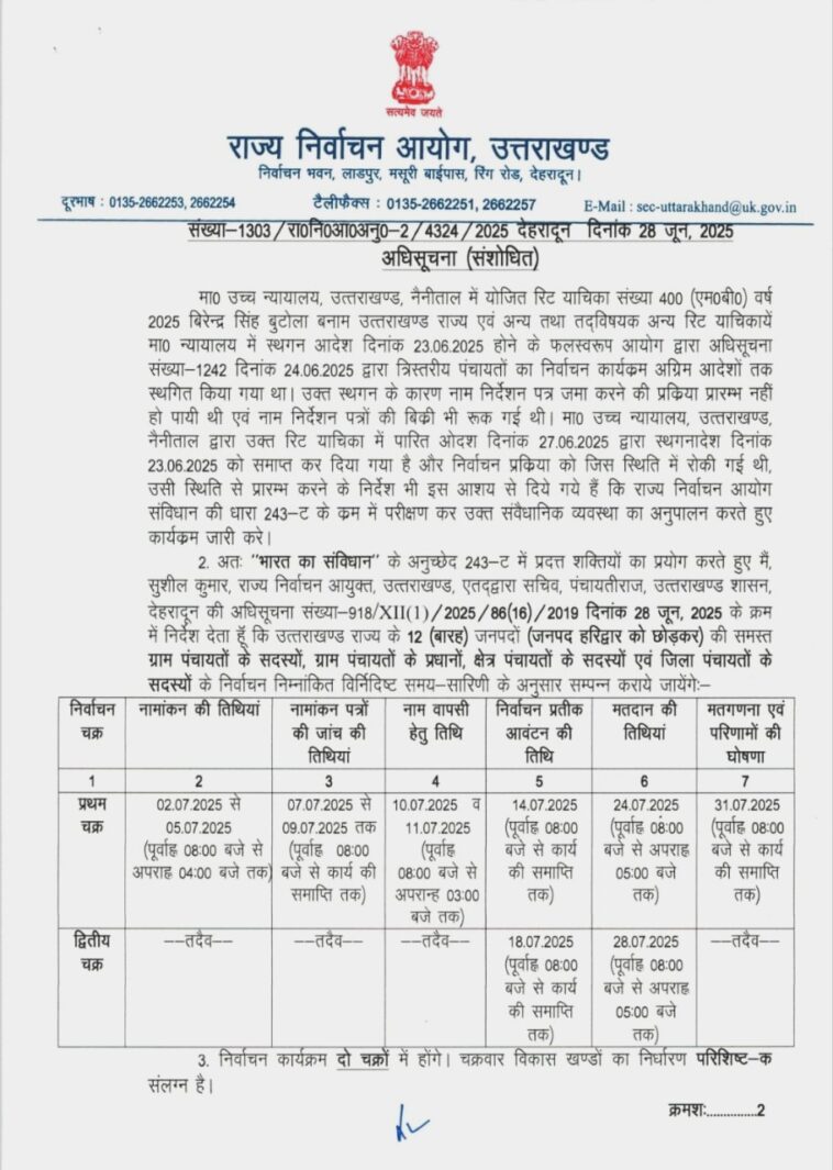 उत्तराखंड शासन की ओर से चुनावी कार्यक्रम की अधिसूचना जारी होने के बाद राज्य निर्वाचन आयोग ने भी चुनावी अधिसूचना जारी कर दी है |